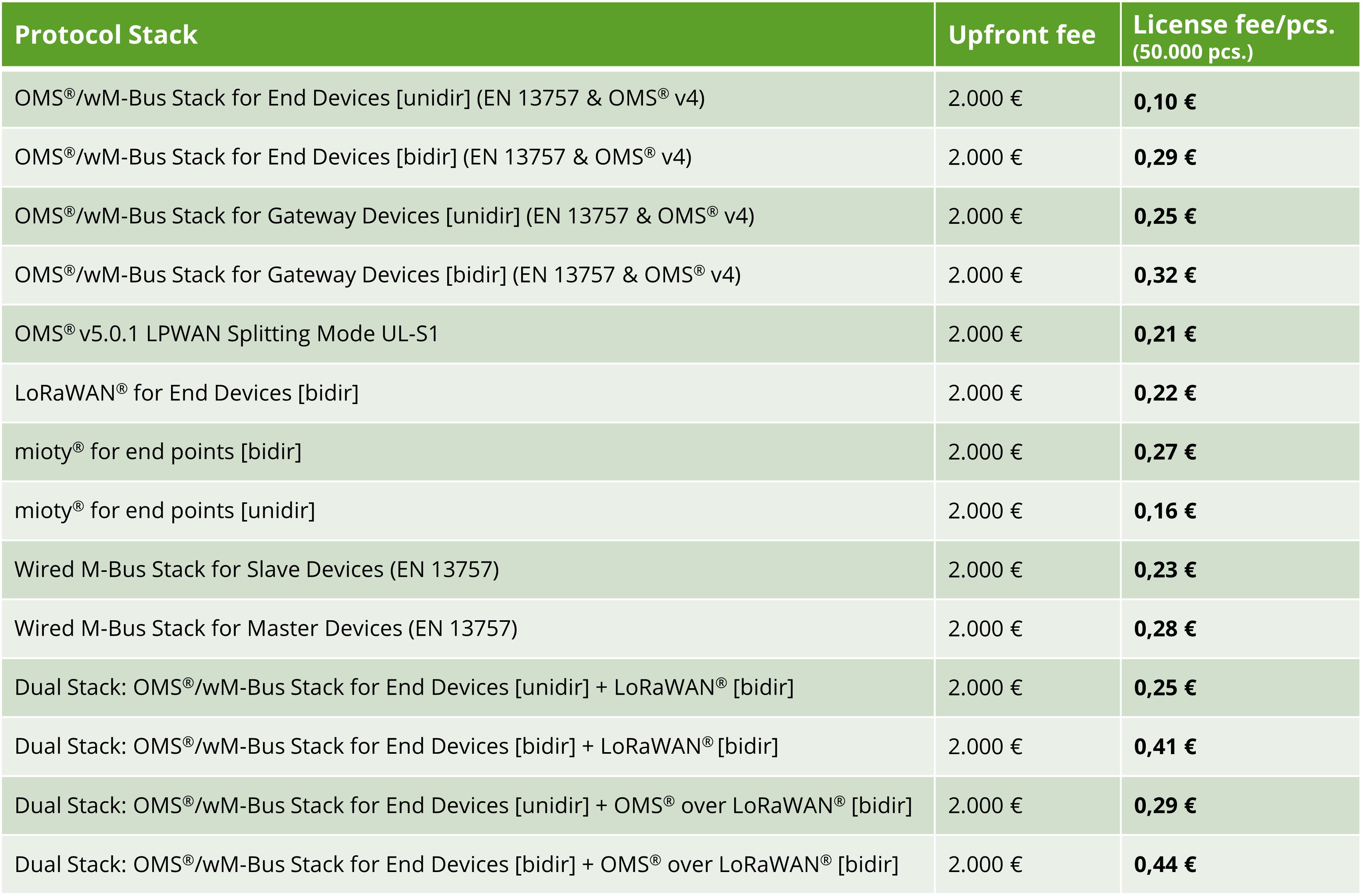 Individuelle Lizenzpakete zur kommerziellen Protocol Stack lizensierung.
