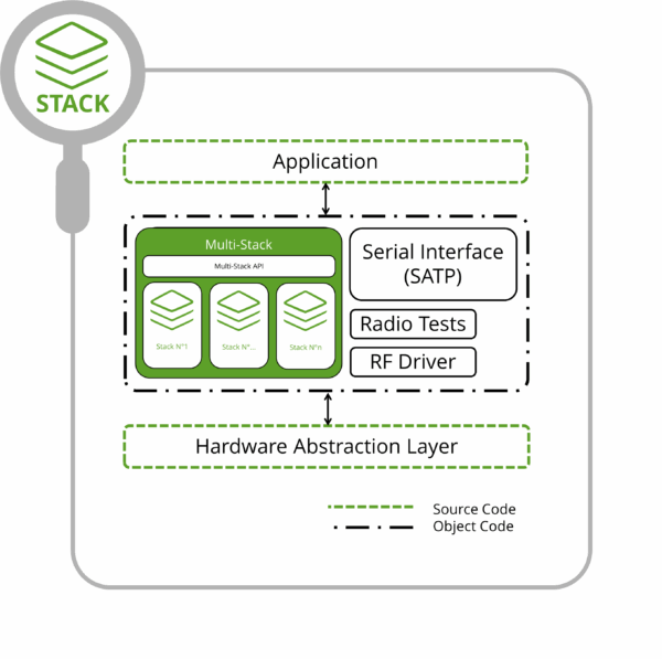 Ein zentrales Element der STACKFORCE Multi Stack Lösung ist die durchdacht konzipierte API (Application Programming Interface). Sie bietet eine einheitliche Schnittstelle zur Ansteuerung aller integrierten Protokoll-Stacks – unabhängig davon, ob sie gleichzeitig oder alternierend betrieben werden.